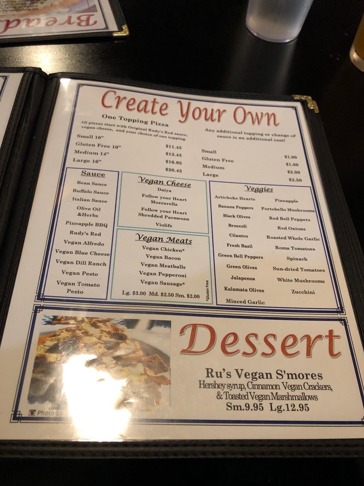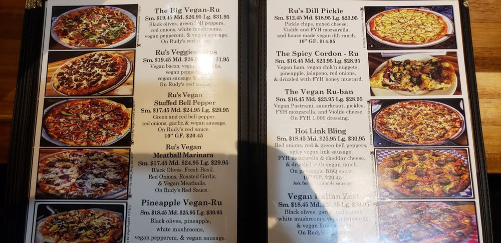 All pizzas start with original rudy and red sauce, and vegan mozzarella cheese.